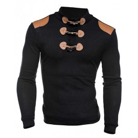 Men's Patchwork Casual / Sport Hoodie & Sweatshirt,Cotton Long Sleeve Black / Gray