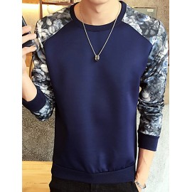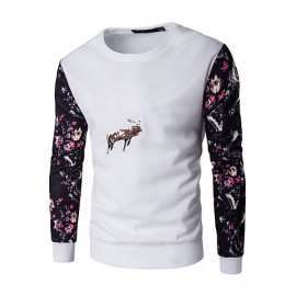 Men's Plus Size / Casual/Daily / Sports Simple / Tops Regular Hoodies,Animal Print / Color Block Blue / White / Black Round NeckLong