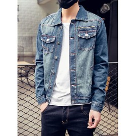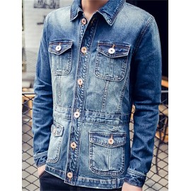 SeasonFall,Outerwear TypeJacket,Closure TypeSingle Breasted,Outerwear LengthRegular,Sleeve LengthLong Sleeve,Clothing Sleeve (cm)M:62,L:63,XL:64,XXL:65,,Special SizeRegular,OccasionCasual,PatternSolid,ColorBlue,FabricCotton,Look After MeWash inside out,Dry flat,Clothing Shoulder Width (cm)M:42,L:43,XL:44,XXL:46,,Clothing Bust (cm)M:98,L:102,XL:106,..