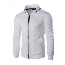 Men's Solid Casual / Sport Hoodie & Sweatshirt,Cotton Long Sleeve Black / White
