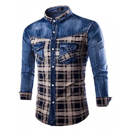 Men's Plaids & Checks Long Sleeve Top , Cotton / Denim Casual